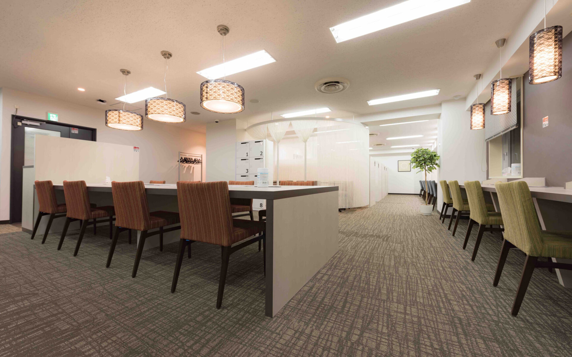 利用者は、NewWorkカード(=登録されたチップのある社員証)を入り口のカードリーダーにかざし、入室。室内には、明るい外光が差し込む「シェアードデスク」、広い机が使える「オープンスペース」、集中して作業しやすい「ブース席」などが用意され、空いていれば自由に席を選んで利用できる。事前に予約すれば会議室も使え、電話スペース、複合機なども利用が可能だ。