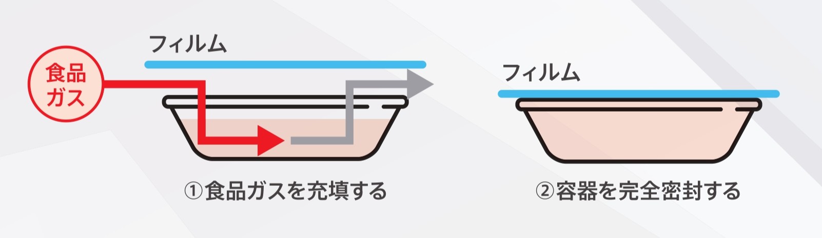 そもそもMAP包装とは、食品トレー内の空気を二酸化炭素や窒素などのガスに置き換え、完全密閉することで消費期限を伸ばす包装技術だ。この技術により、肉や魚などの生鮮食品や惣菜の消費期限を1日から3日程に伸ばすことができるという。海外ではすでにこの技術の導入が進み、日本でも近年はコンビニの惣菜などに用いられたりしている。